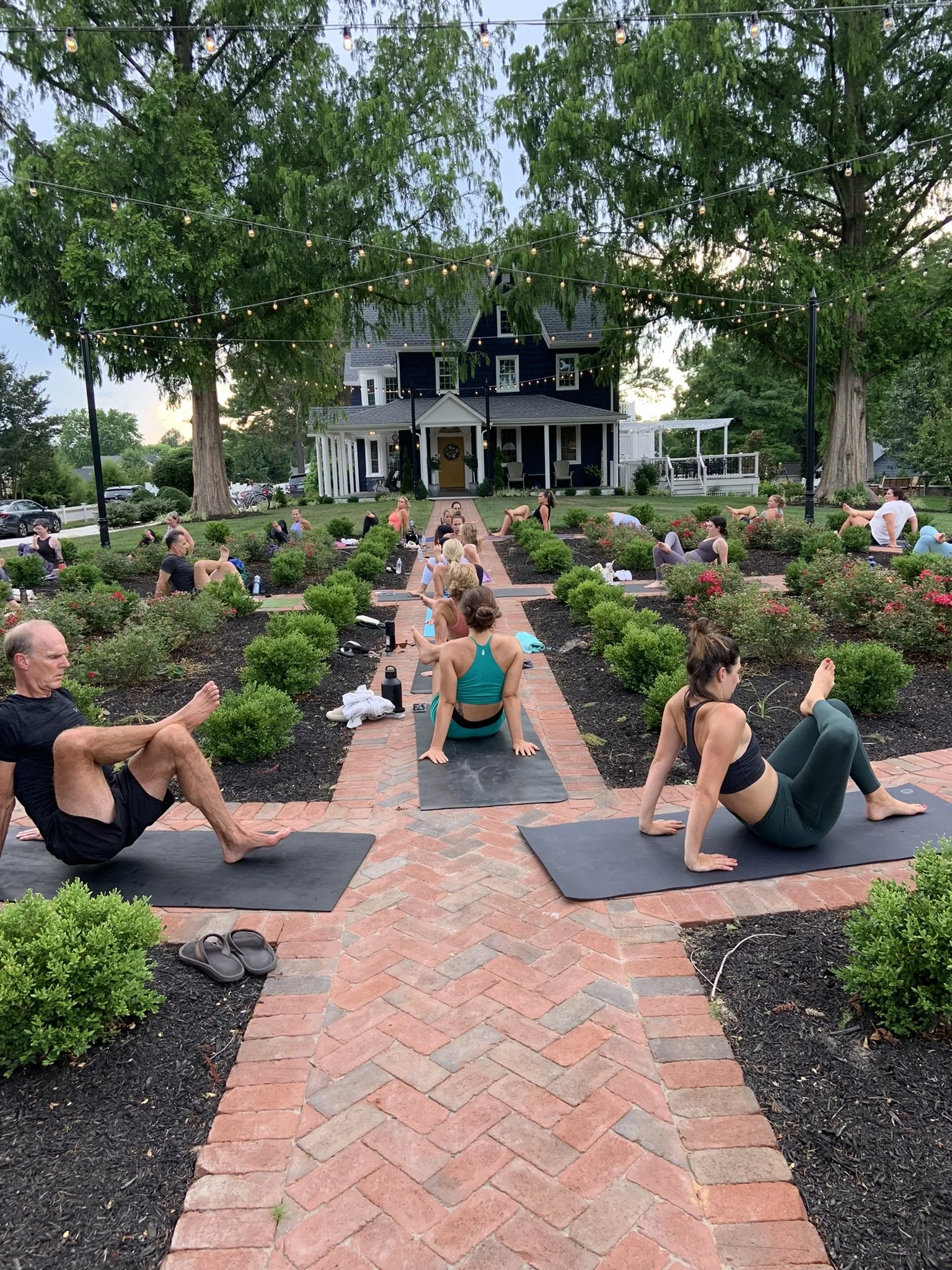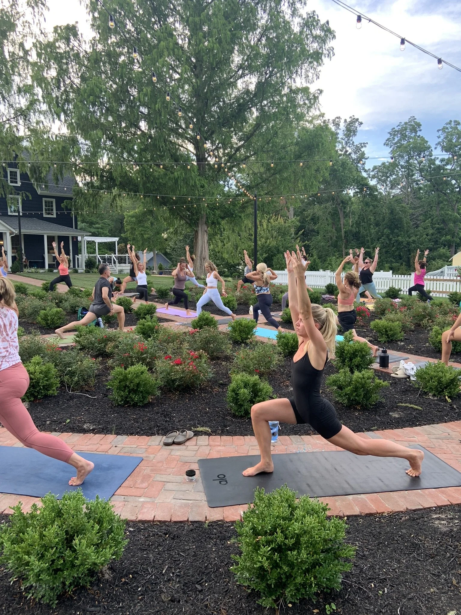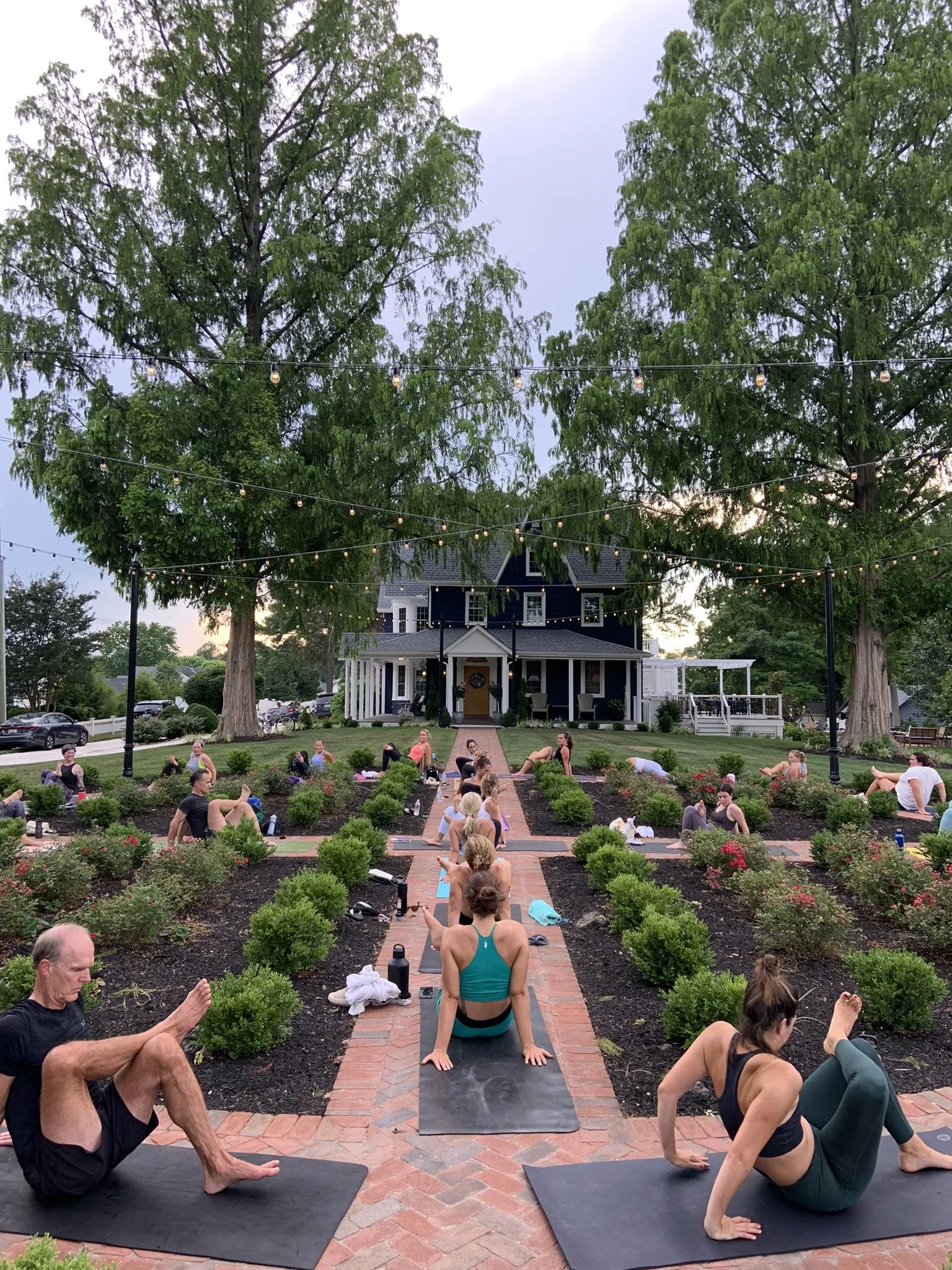 The incredibly talented Jared Rowan and Sara Ashley Hancock teamed up to host an intimate yoga & meditation experience on the sprawling front lawn at The Inn. 30 yogis spaced perfectly amongst the rose bushes and boxwood on our brick parterre garden that sits directly below the bright twinkle lights, with a direct view of the full moon. Following a 60 minute yoga flow, the yogis participated in a full moon clay and sea glass ritual, and then enjoyed some charcuterie cups and Prosecco on the garden terrace and patio. What a wonderful evening!